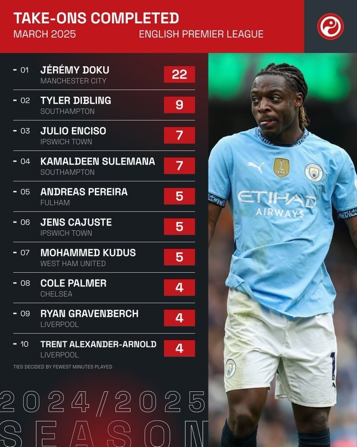 4月1日訊 據(jù)Squawka統(tǒng)計(jì),多庫是在英超三月份的比賽中完成過人次數(shù)最多的球員。