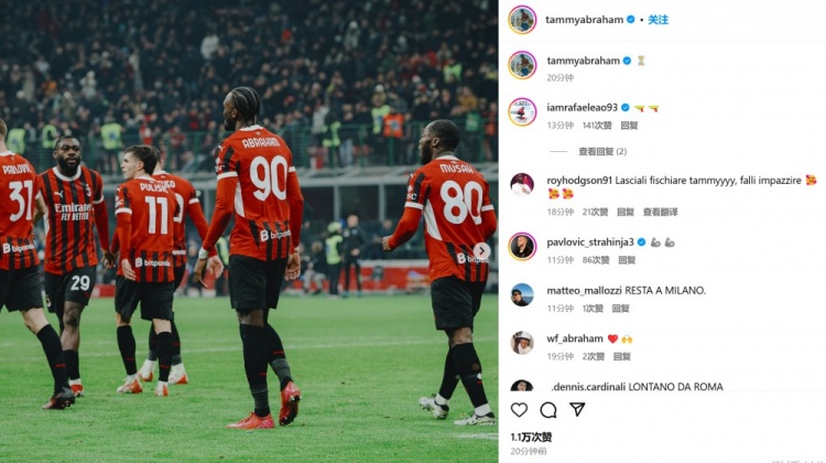 亞伯拉罕在進(jìn)球后并未進(jìn)行慶祝,他也在賽后通過社媒曬出自己的比賽照并附上?表情。數(shù)據(jù)統(tǒng)計(jì)顯示,27歲的亞伯拉罕本賽季各項(xiàng)賽事為米蘭29場(chǎng)貢獻(xiàn)8球5助攻。