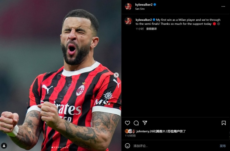 沃克寫道:作為米蘭球員的首場(chǎng)勝利,我們晉級(jí)了半決賽!非常感謝大家今天的支持。