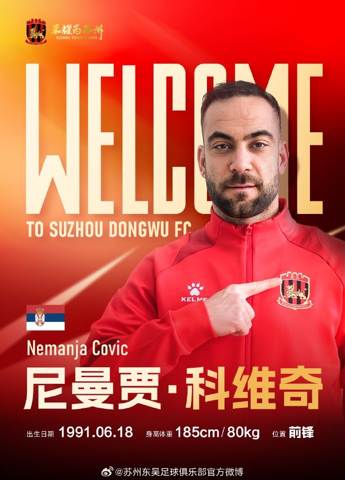 經(jīng)友好協(xié)商并達成一致,球員尼曼賈 · 科維奇、安德烈耶維奇正式加盟蘇州東吳足球俱樂部,為蘇州東吳出戰(zhàn)新賽季各項賽事。 ??? 標簽: 足球 中超 中國足球 中甲 蘇州東吳