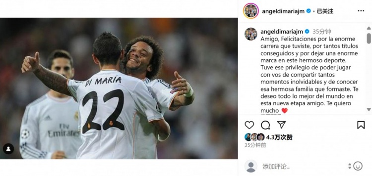 2月7日訊 巴西傳奇球星馬塞洛宣布退役,他在皇馬效力時(shí)期的隊(duì)友迪馬利亞也在社媒曬出昔日合影為其送上祝福。
