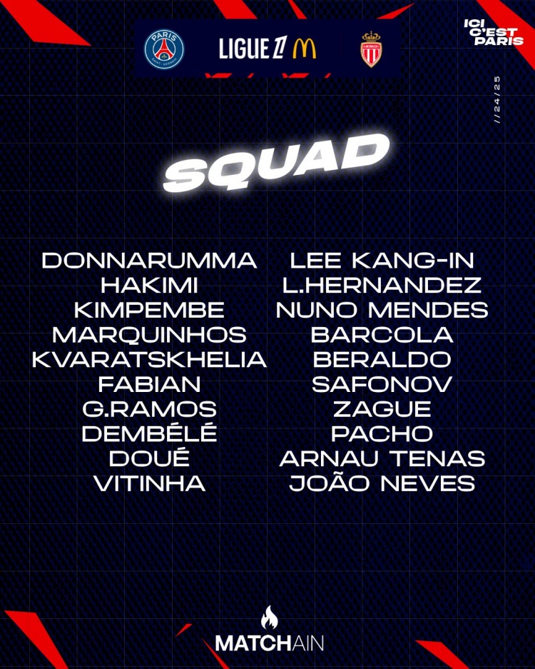 2月7日訊 北京時(shí)間明天凌晨,巴黎將在法甲第21輪比賽中主場(chǎng)對(duì)陣摩納哥,巴黎公布了此役的球員名單,登貝萊、克瓦拉茨赫利亞在列,馬爾基尼奧斯、若昂-內(nèi)維斯回歸,扎伊爾-埃梅里繼續(xù)缺席。