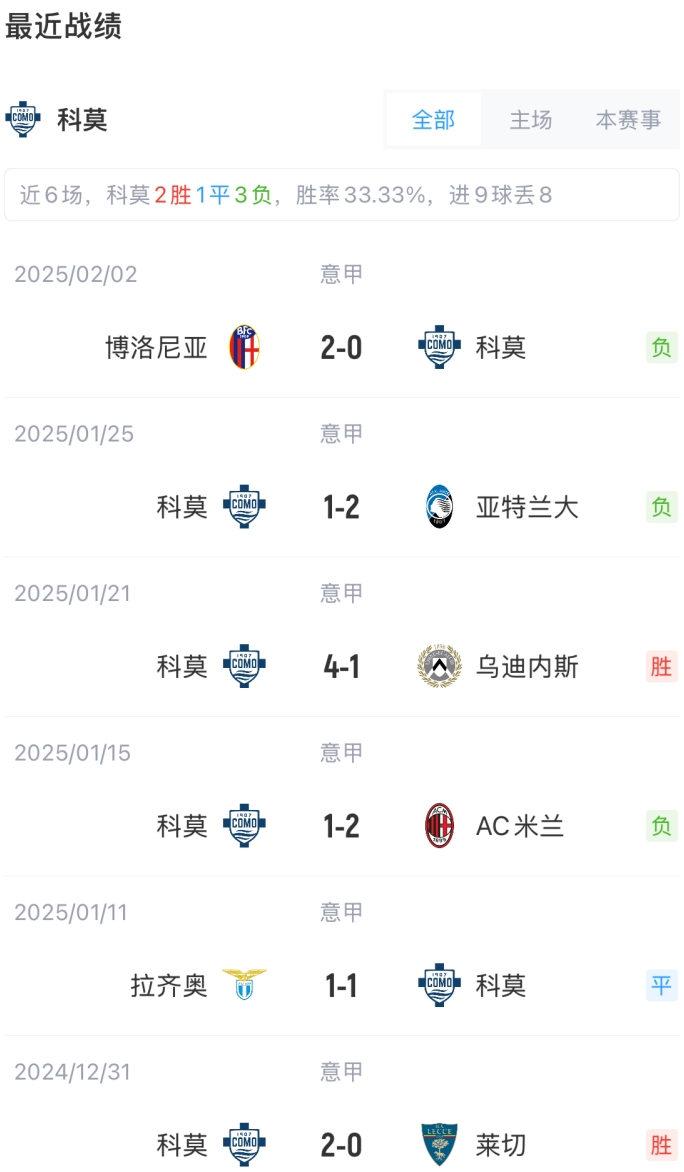 2月8日訊 意甲第24輪,科莫主場迎戰(zhàn)尤文比賽即將打響。賽前首發(fā)出爐。