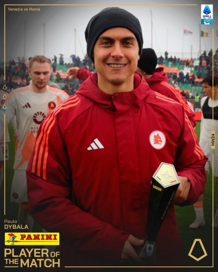 在第24輪意甲聯(lián)賽,羅馬客場(chǎng)1-0戰(zhàn)勝威尼斯。迪巴拉為羅馬首發(fā)出場(chǎng),并在第57分鐘罰進(jìn)制勝點(diǎn)球。迪巴拉在本場(chǎng)比賽的傳球準(zhǔn)確率為78.3%,5次成功對(duì)抗,3次成功傳中,賽后當(dāng)選為比賽最佳球員。