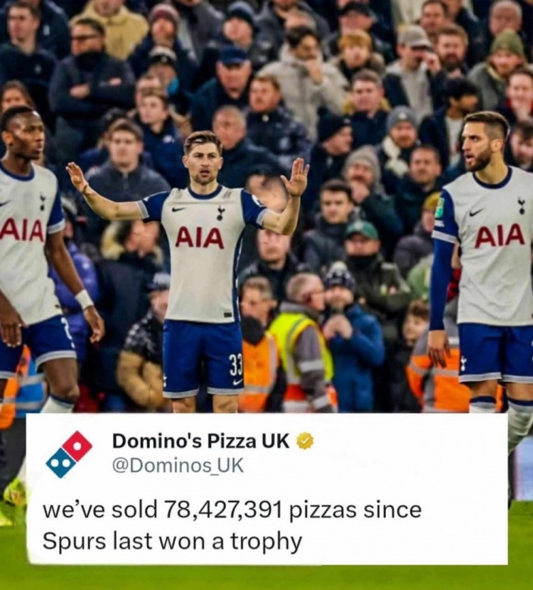 自熱刺上次贏得獎(jiǎng)杯以來(lái),我們已經(jīng)售出了78427391個(gè)披薩~