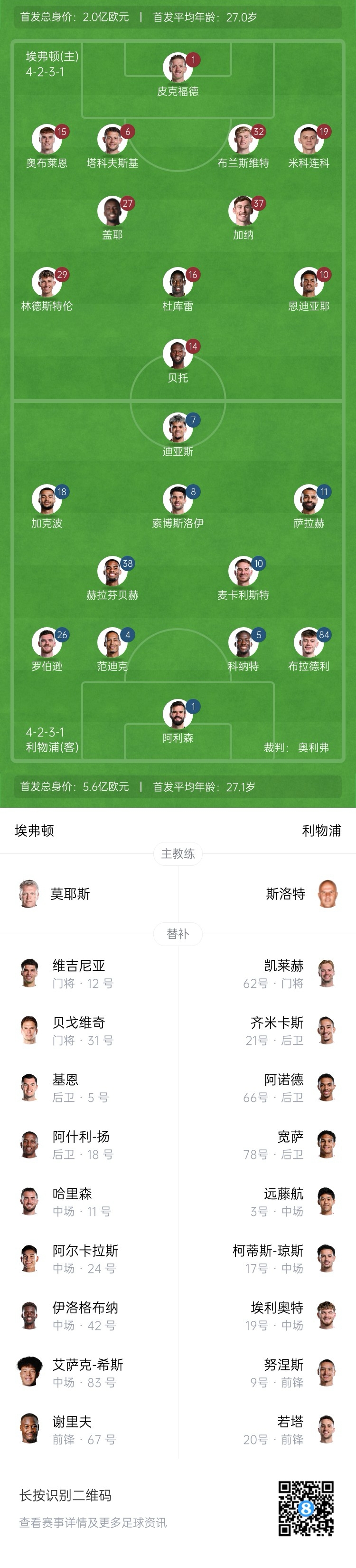 埃弗頓首發(fā):1-皮克福德、15-奧布萊恩、6-塔科夫斯基、32-布蘭斯維特、19-米科連科、27-蓋耶、37-詹姆斯-加納、16-杜庫(kù)雷、29-林德斯特倫、10-恩迪亞耶、14-貝托