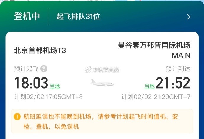 昨天晚點后返航!博主:泰囧,今天國安飛泰國的班機繼續(xù)晚點