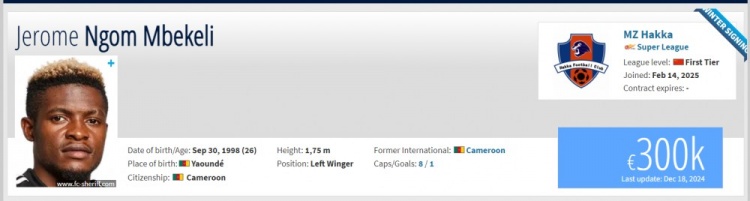 喀麥隆球員熱羅姆·恩戈姆·姆貝凱利(Jerome Ngom Mbekeli)轉(zhuǎn)會(huì)梅州客家。恩戈姆今年26歲,司職邊鋒,曾入選喀麥隆國(guó)家隊(duì)。此前在摩爾多瓦警長(zhǎng)隊(duì)效力,為該隊(duì)出場(chǎng)了42次,打進(jìn)6球。 ???
