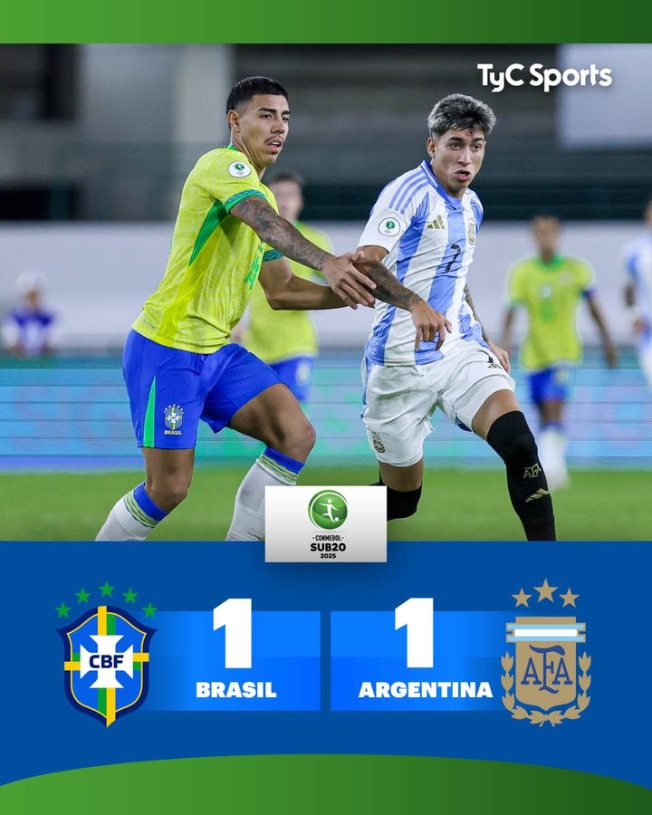 2月14日訊 今天早晨,阿根廷U20在南美U20青少年錦標賽決賽輪中1-1戰(zhàn)平巴西U20,賽事將在最后一輪決出冠軍。