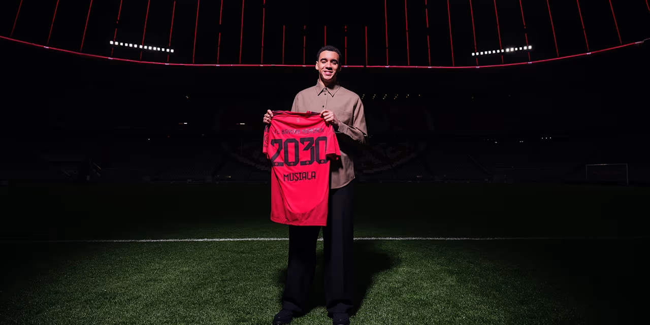 據(jù)多家德媒報道,穆西亞拉的年薪將高達(dá)2500萬歐,他的合同中有1.75億歐的解約金條款。