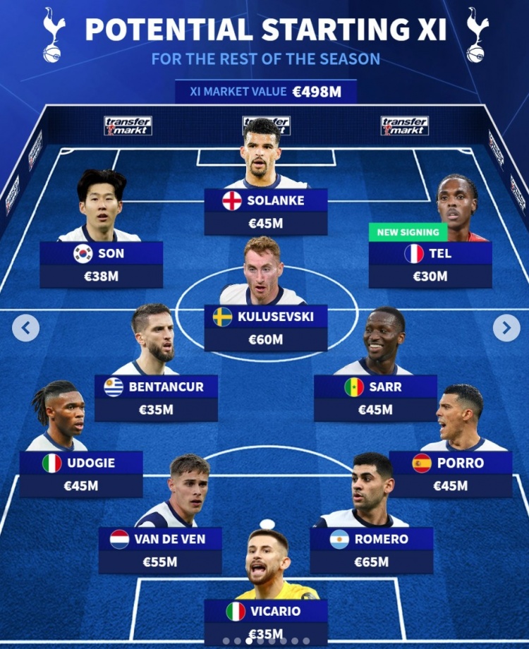 德轉(zhuǎn)預(yù)測熱刺下半程首發(fā)陣:總身價4.98億歐