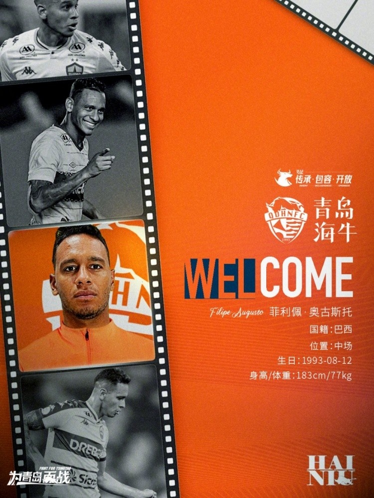 2月15日訊 昨天下午,青島海牛足球俱樂(lè)部官宣了前巴西國(guó)奧隊(duì)球員、本菲卡舊將費(fèi)利佩-奧古斯托正式加盟的消息,雙方簽訂了年限為“1+1”的工作合同。據(jù)記者孫飛報(bào)道,海牛集齊了新賽季的5名外援,今天球隊(duì)將與亞泰踢熱身賽。