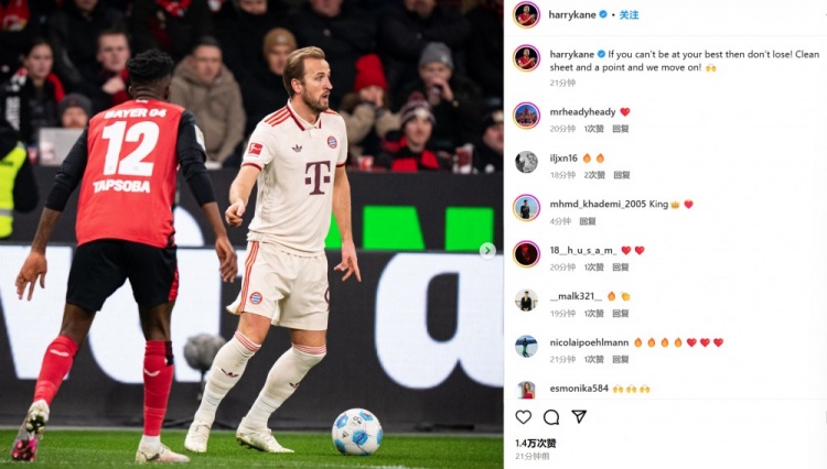 凱恩在賽后通過社媒曬出比賽照,并配文:“如果你不處在最佳狀態(tài),那么就先別輸球!零封并拿下1分,我們繼續(xù)向前!”