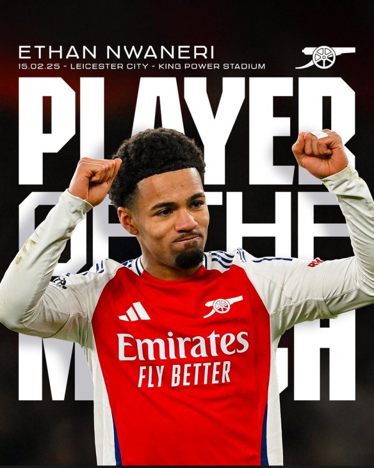 阿森納官推在賽后宣布,經(jīng)過球迷投票,恩瓦內(nèi)里當選本場比賽隊內(nèi)最佳球員。