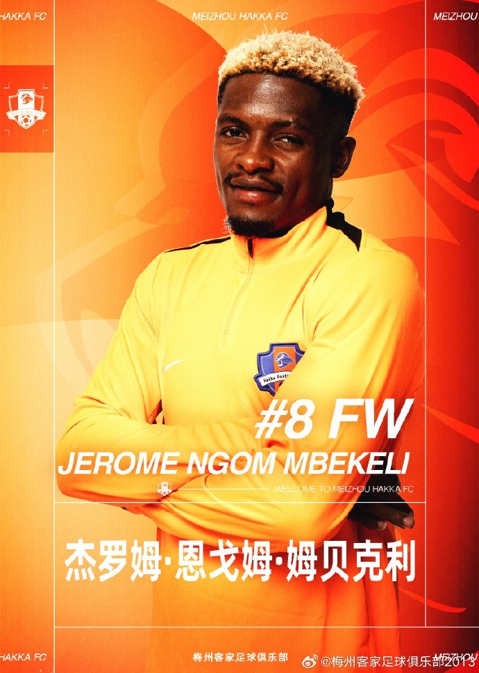 經(jīng)與球員本人友好協(xié)商一致,杰羅姆-恩戈姆-姆貝克利加盟梅州客家足球俱樂部,新賽季將身披8號球衣代表梅州客家足球俱樂部征戰(zhàn)中超聯(lián)賽及各項(xiàng)賽事。