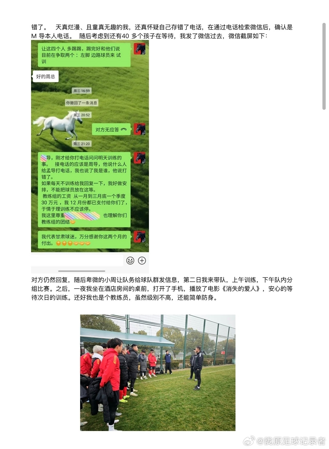 博主寫道:“蘭州隴原競技足球俱樂部遭遇內(nèi)部風波,教練組因投資人不同意引進一名長期處于傷病狀態(tài)的球員而集體停擺失聯(lián),熱身賽被取消,一季度預付的工資尚未退回?!边@種狗血的事情讓我們年輕的蘭州球隊遇到了,支持俱樂部周總維護自身和俱樂部的合法權益,抵制中國足球圈的糟爛人情世故亂象,呼吁那些不熱愛中國足球的沒有多少文化的酒蒙子,寄生蟲們滾出足球圈!