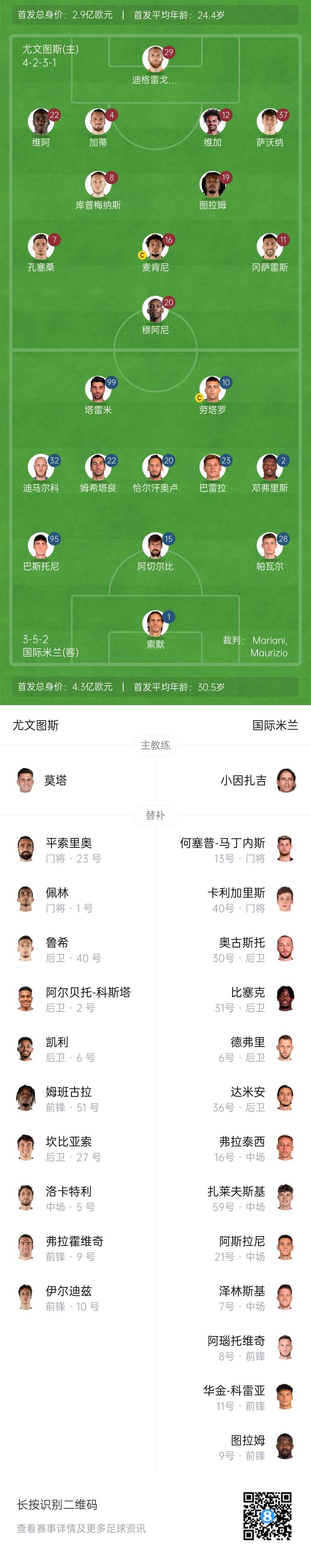 尤文替補(bǔ):1-佩林、23-平索里奧、2-阿爾貝托-科斯塔、5-洛卡特利、6-凱利、9-弗拉霍維奇、10-伊爾迪茲、27-坎比亞索、40-魯希、51-姆班古拉